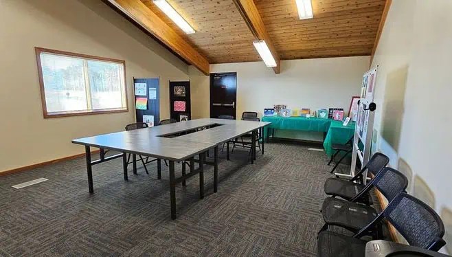 The Forest Classroom is a wonderful place for small gatherings with a “windowed wall” that looks out onto our EcoCenter. Consider it for your next business meeting, bridal or baby shower, or birthday party. 22’ X 26’ room, carpeted, ADA accessible. The maximum occupancy for this space is 25; however, this may result in limited seating and standing room. For optimal comfort, seating with round tables accommodates up to 16 individuals.